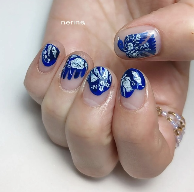 Fine china becomes you when you paint the design of blues into nude nails partial to the space. Part skin nude flesh and part fine china. Unlike Porcelain humans are resilient. Its beauty is contained by the user’s skills. You become fine china.