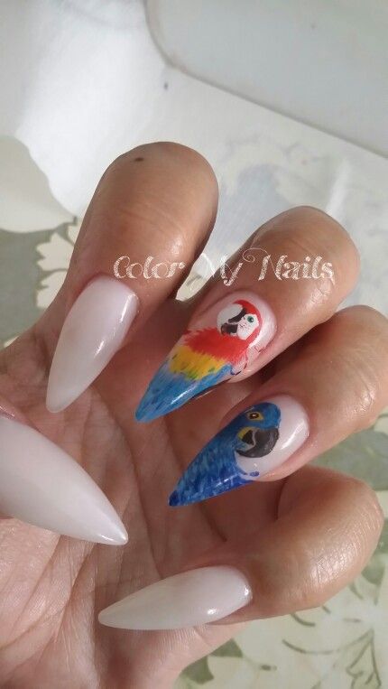 parrot nails are for the friendly bird lovers display of what they love most. If you ever want to catch their attention, wear these and they will stare. Parrots have a way with standing nearby and staying calm and collected. I watch people with sketchbooks draw animals at the zoo. This is one of the ways we paint beauty in observation. There are cafes with parrots in Japan I think this is my cup of tea. Hanging out with animals is such a soothing thing that maybe having them on your nails is a lasting moment. We get attached and then there is your favorite jungle moment.