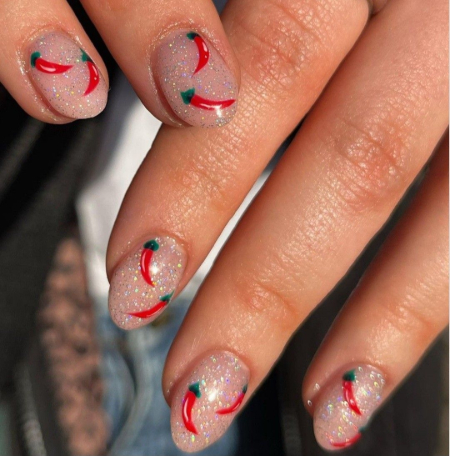 GLitter Chili pepper nails