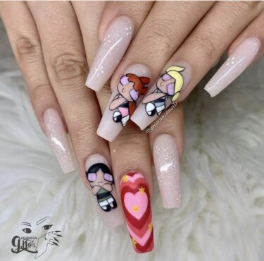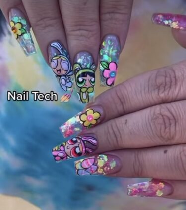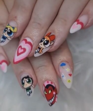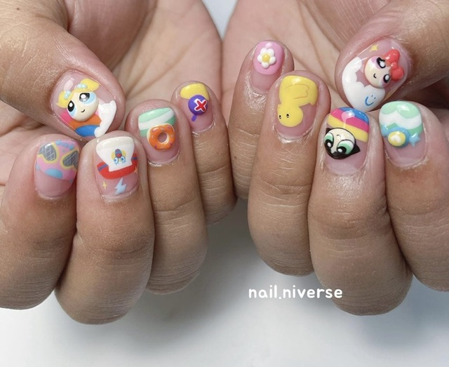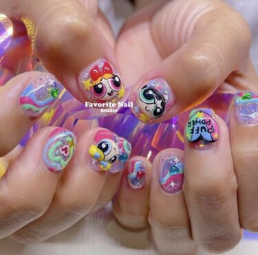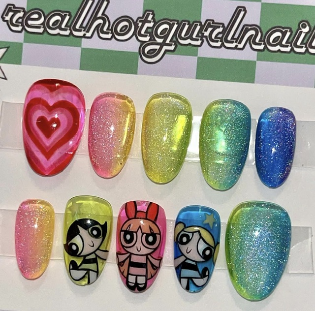 Colorful powerpuff girls nails. Laser focus on fighting crime.